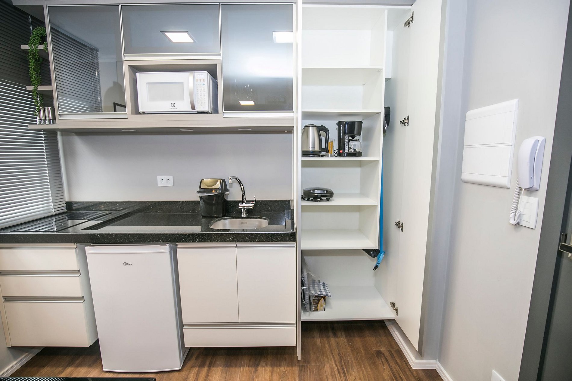 ⌂ Estúdio totalmente mobiliado que oferece as seguintes comodidades aos seus hospedes: