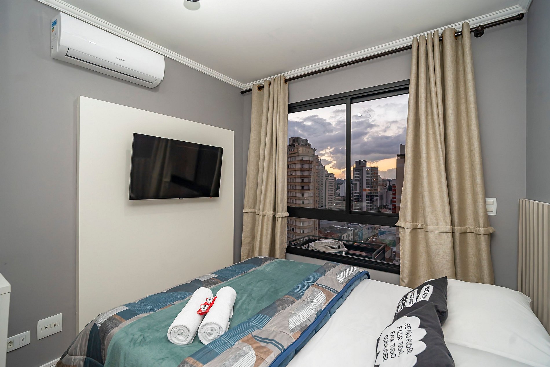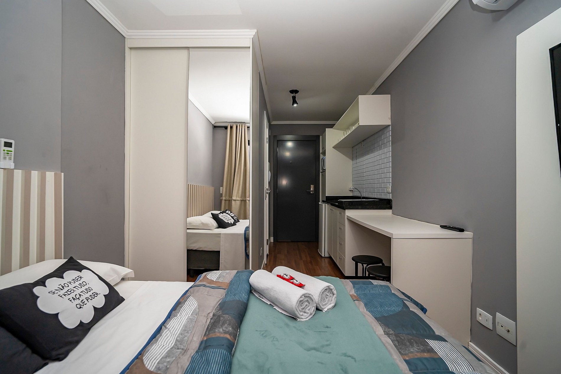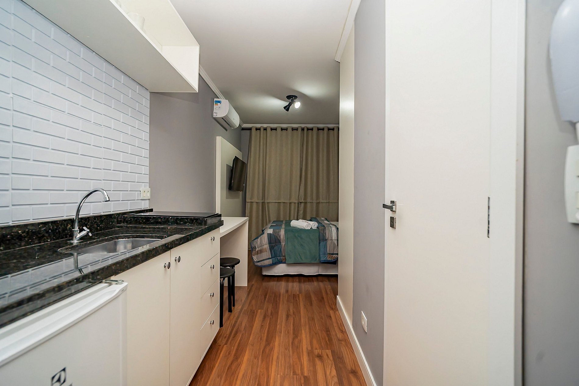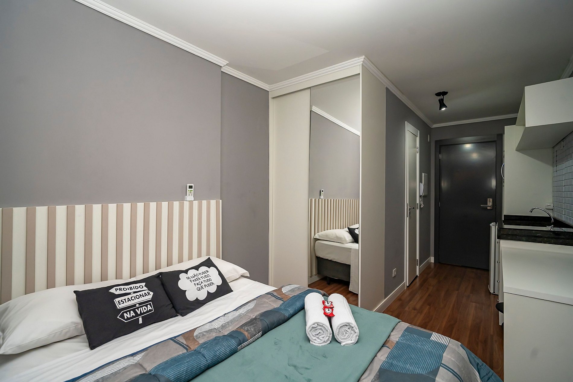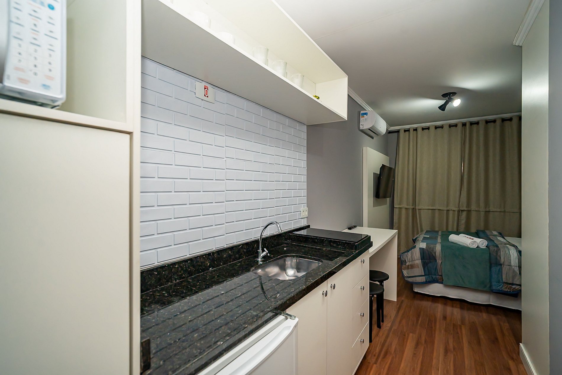 ⌂ Studio totalmente mobiliado que oferece as seguintes comodidades aos seus hospedes: