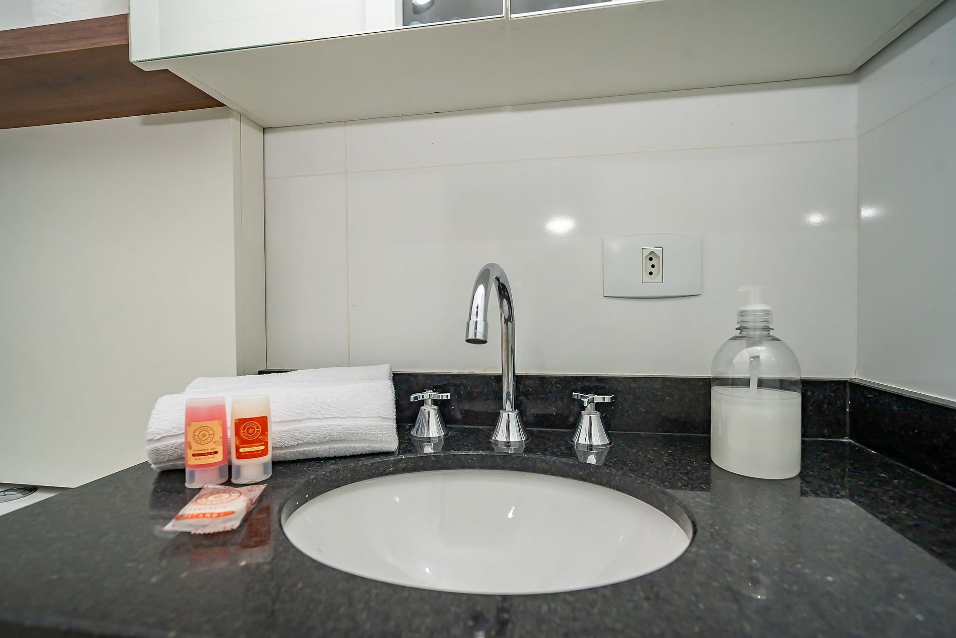 Durante a sua estadia não temos serviço de quarto e nem fazemos a reposição dos itens da sua unidade como: shampoo, condicionador, sabonete, papel higiênico, pano de prato, esponja e detergente de louça, além de pilhas do controle remoto, ar-condicionado e da fechadura eletrônica. A reposição destes itens é de responsabilidade do hóspede titular da reserva.