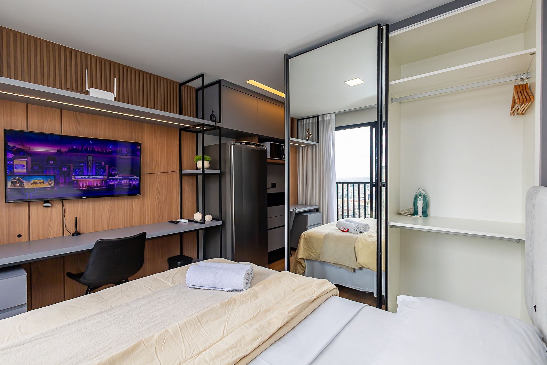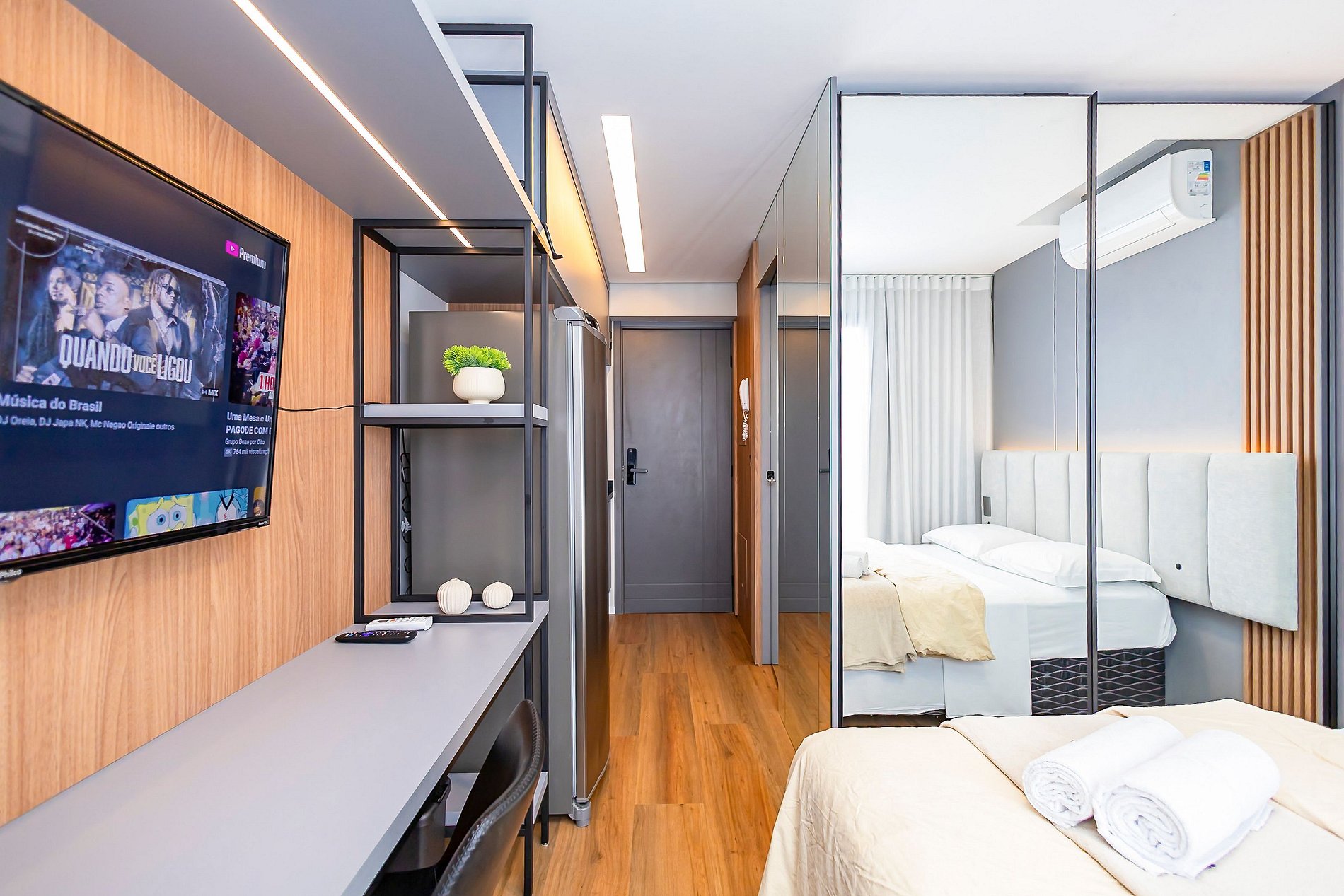 ⌂ Estúdio totalmente mobiliado que oferece as seguintes comodidades aos seus hóspedes: