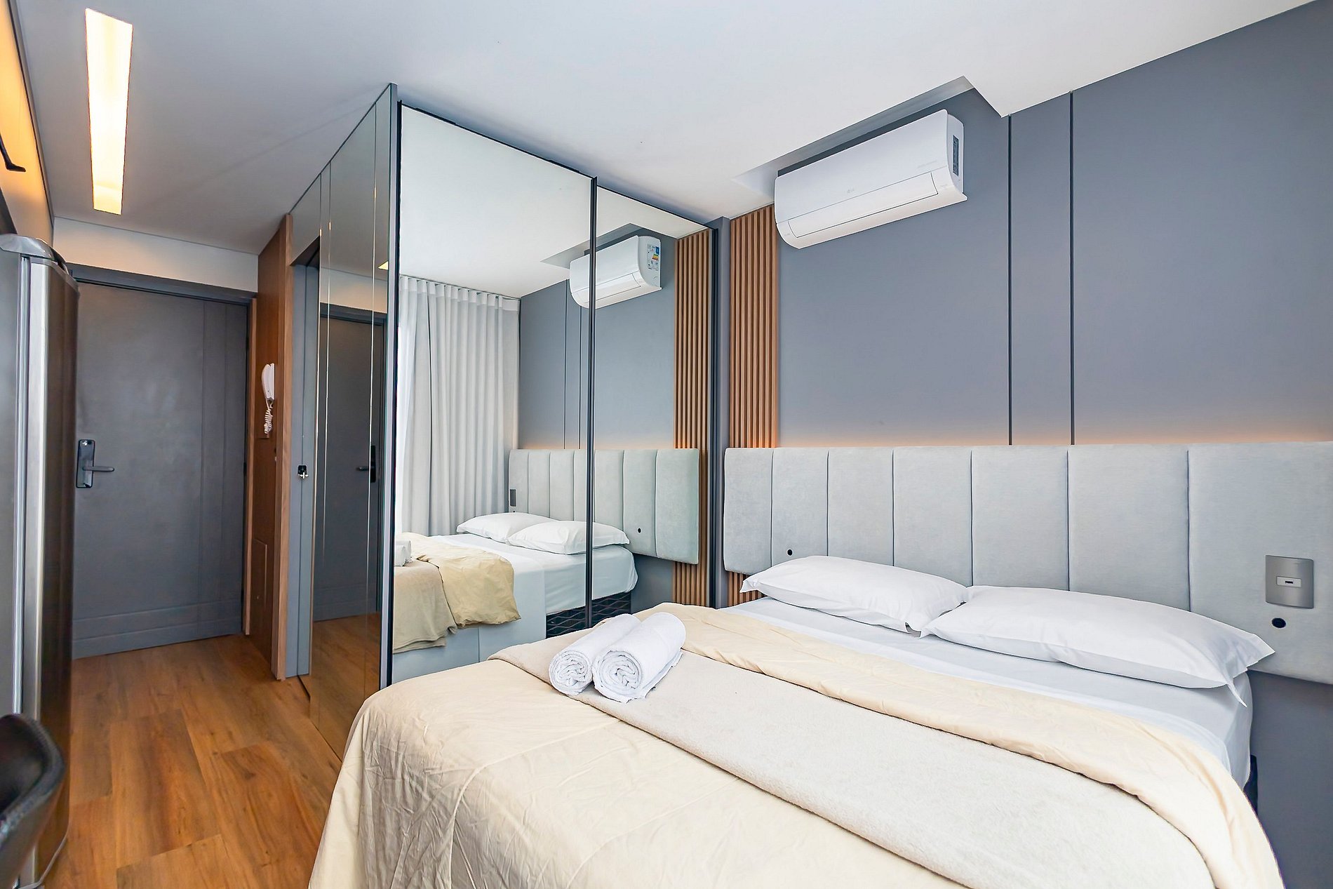 Studio super completo, com vaga de garagem, ideal para até 2 pessoas, com ambientes bem planejados para oferecer conforto, praticidade e uma estadia agradável. Localizado em um bairro tranquilo e seguro, perfeito para quem busca descanso sem abrir mão da conveniência. A região conta com todas as comodidades essenciais, como supermercados, padarias, farmácias, cafés e restaurantes. Um espaço acolhedor, em uma localização que une sossego e facilidade no dia a dia.