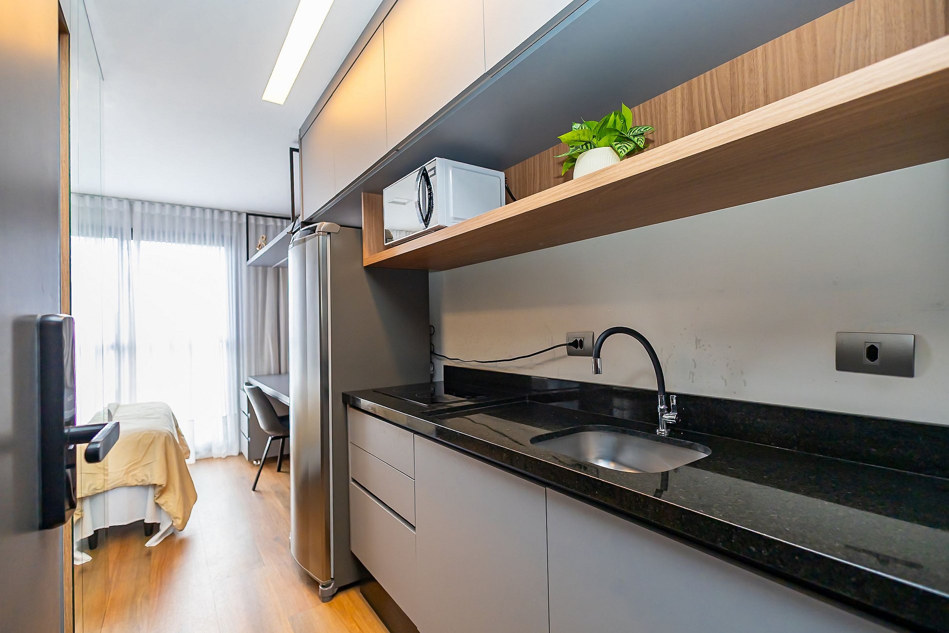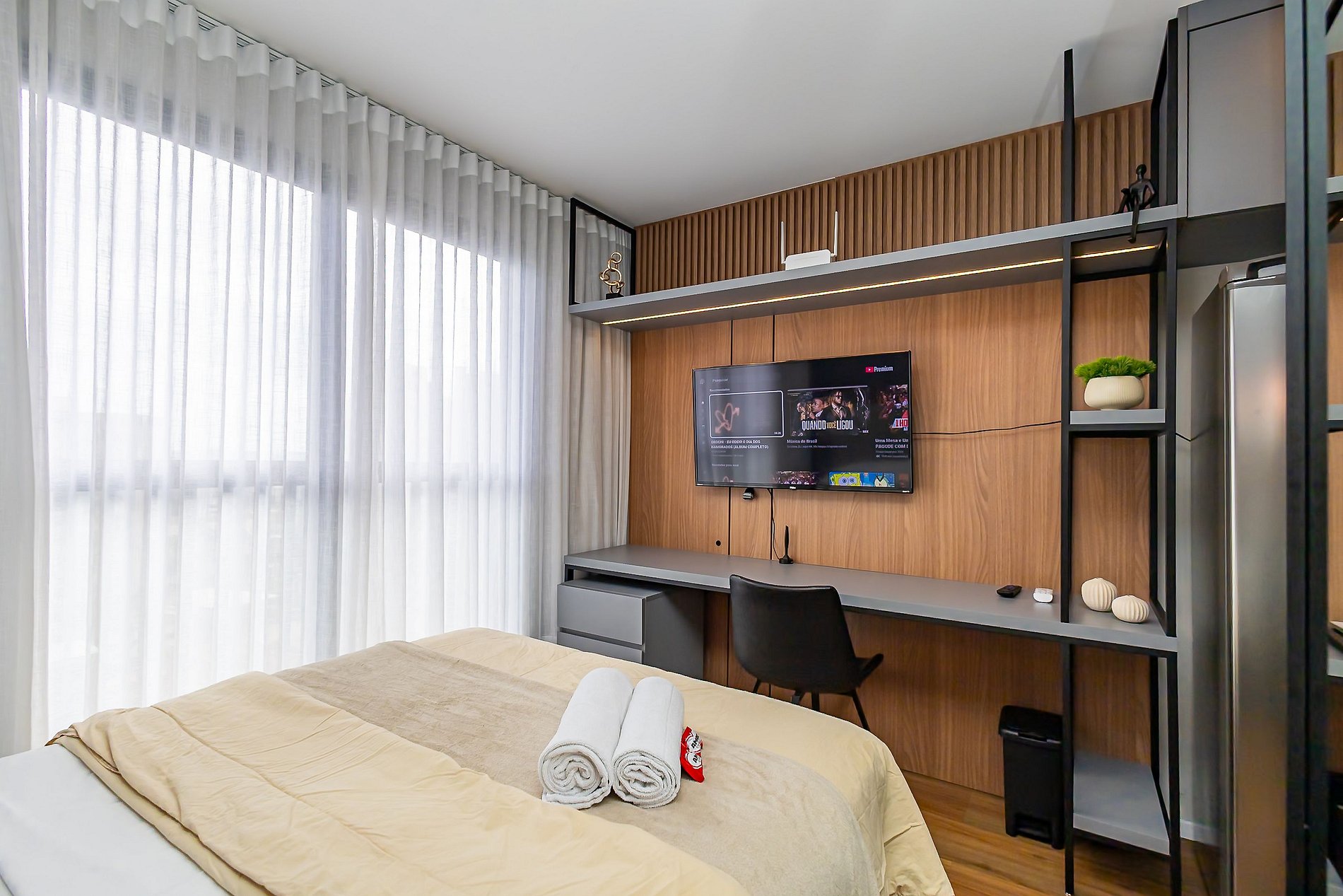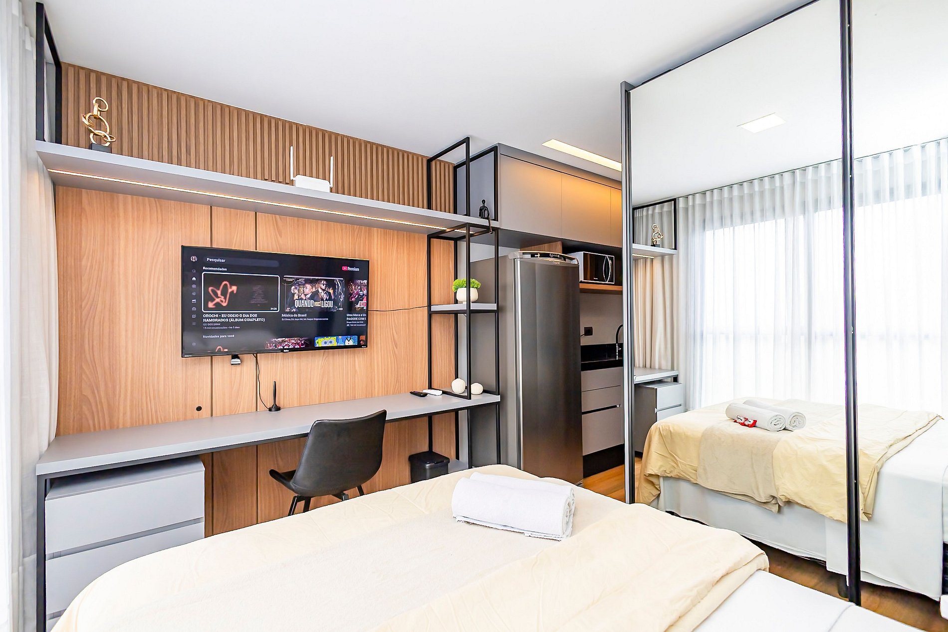⌂ Estúdio totalmente mobiliado que oferece as seguintes comodidades aos seus hóspedes: