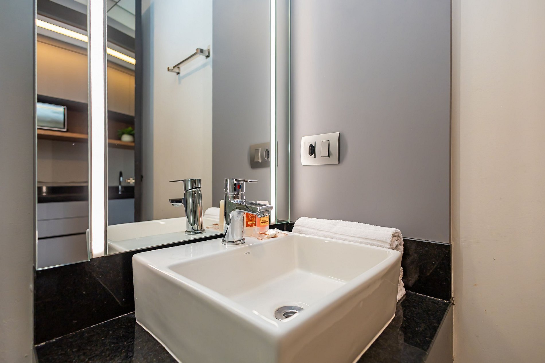 Durante a sua estadia não temos serviço de quarto e nem fazemos a reposição dos itens da sua unidade como: shampoo, condicionador, sabonete, papel higiênico, pano de prato, esponja e detergente de louça, além de pilhas do controle remoto, ar-condicionado e da fechadura eletrônica. A reposição destes itens é de responsabilidade do hóspede titular da reserva.