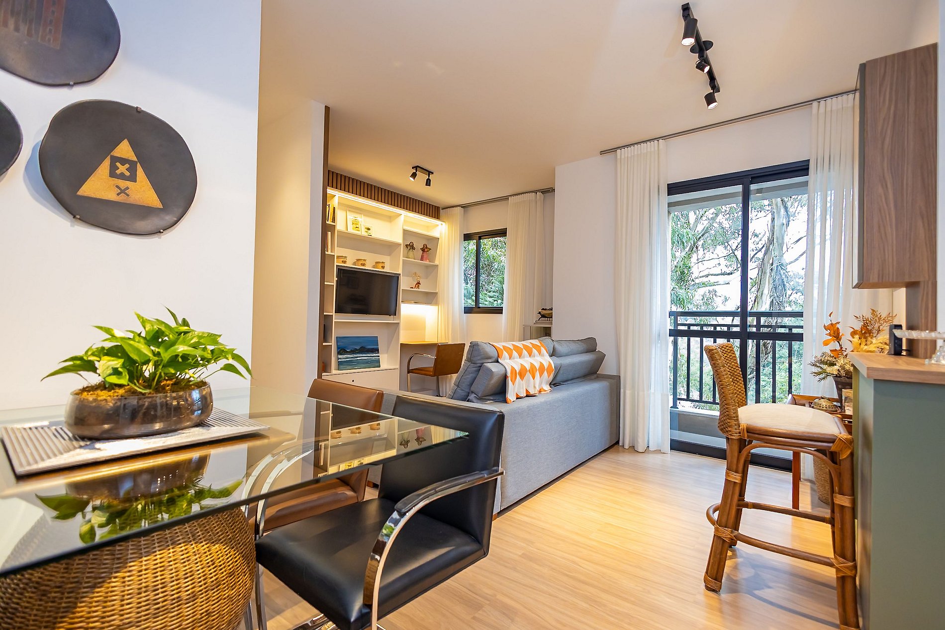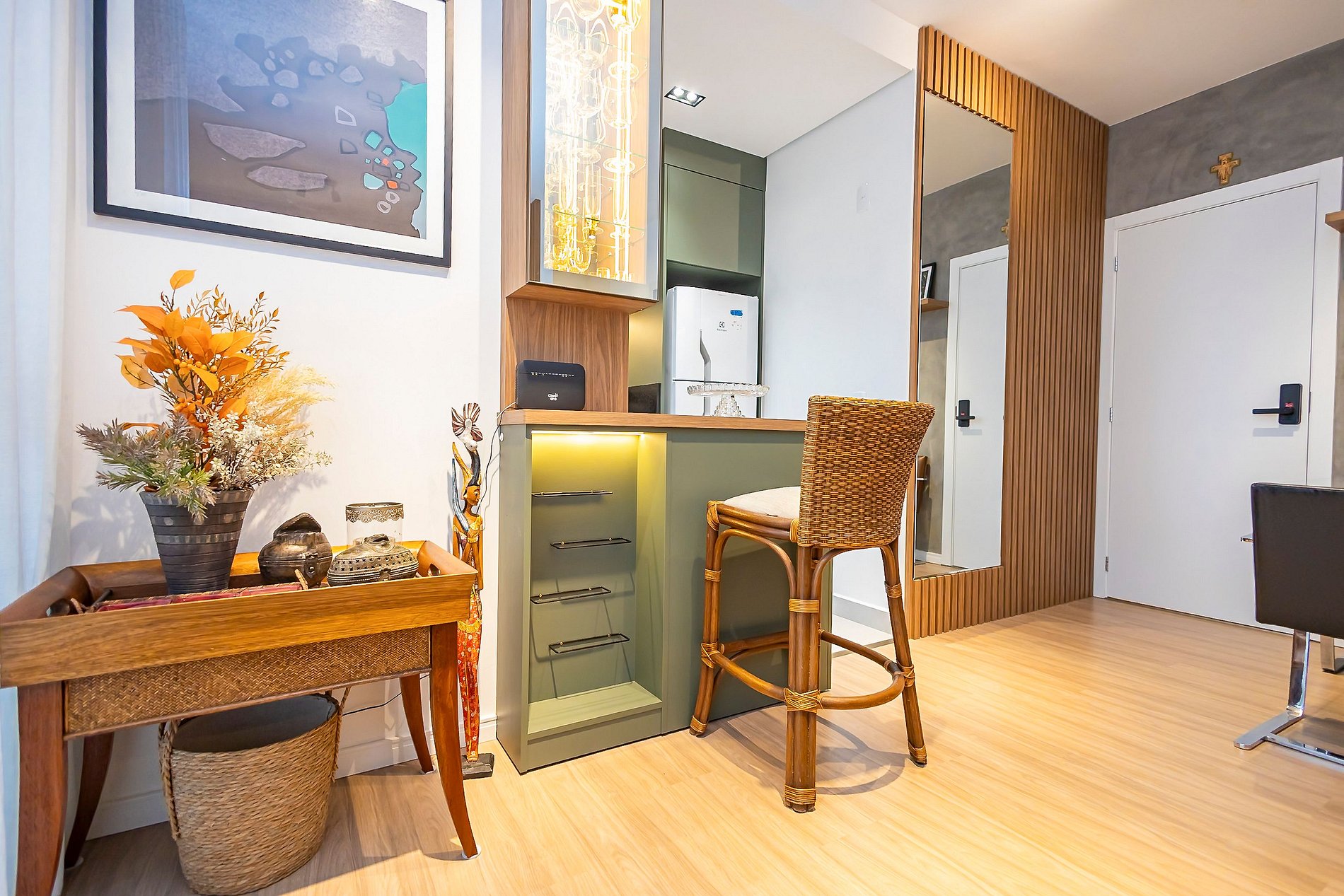 Sinta-se em casa nesse apartamento de 1 quarto, com vaga de garagem. Super aconchegante e completo, ideal para quem busca conforto e tranquilidade. Ambientes bem decorados, funcionais e pensados para proporcionar uma estadia acolhedora. Localizado em uma região nobre e tranquila da cidade, com fácil acesso e cercada por áreas verdes, ideal para quem aprecia estar próximo à natureza. Uma excelente opção para relaxar com qualidade, sem abrir mão da praticidade e de uma localização privilegiada.