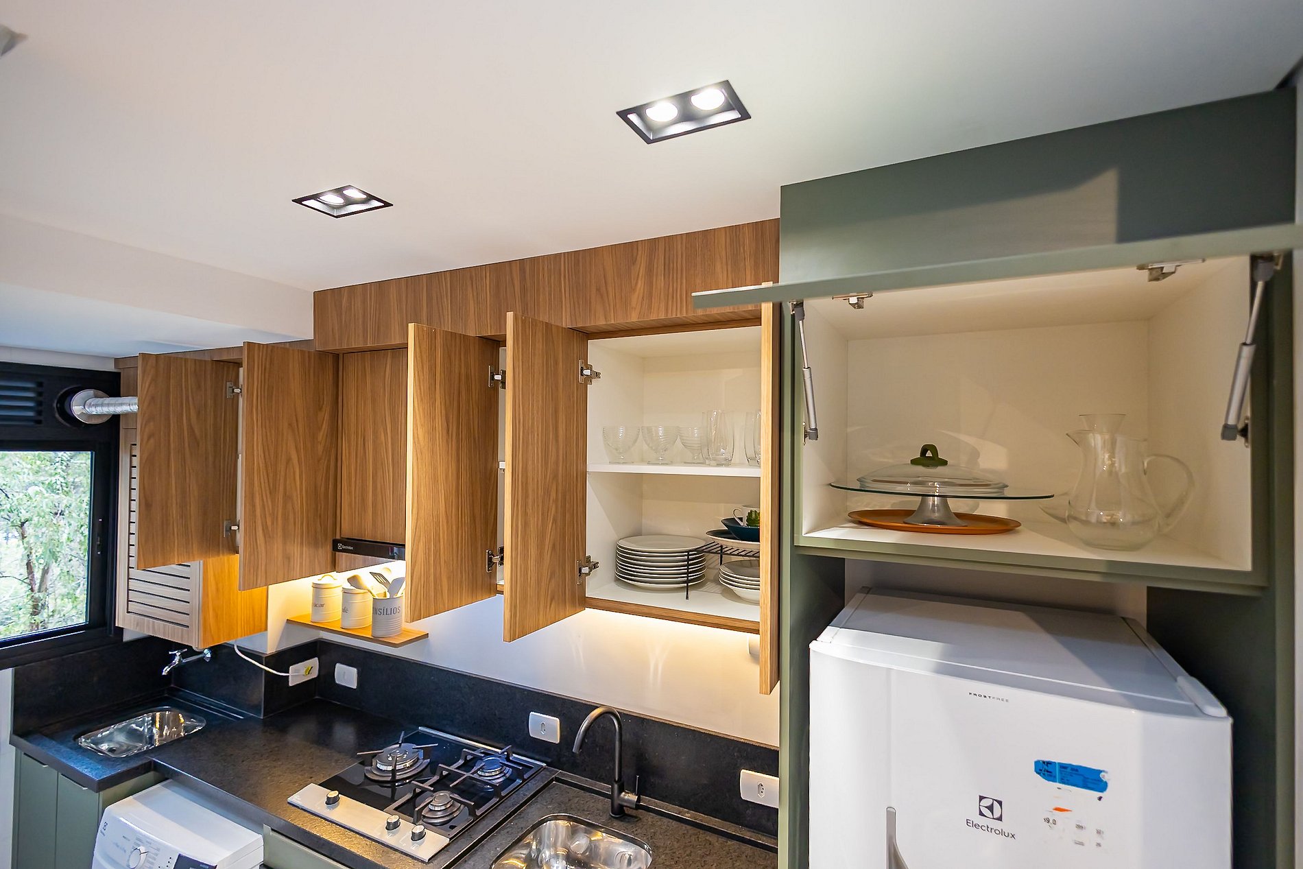 Durante a sua estadia não temos serviço de quarto e nem fazemos a reposição dos itens da sua unidade como: shampoo, condicionador, sabonete, papel higiênico, pano de prato, esponja e detergente de louça, além de pilhas do controle remoto, ar-condicionado e da fechadura eletrônica. A reposição destes itens é de responsabilidade do hóspede titular da reserva.
