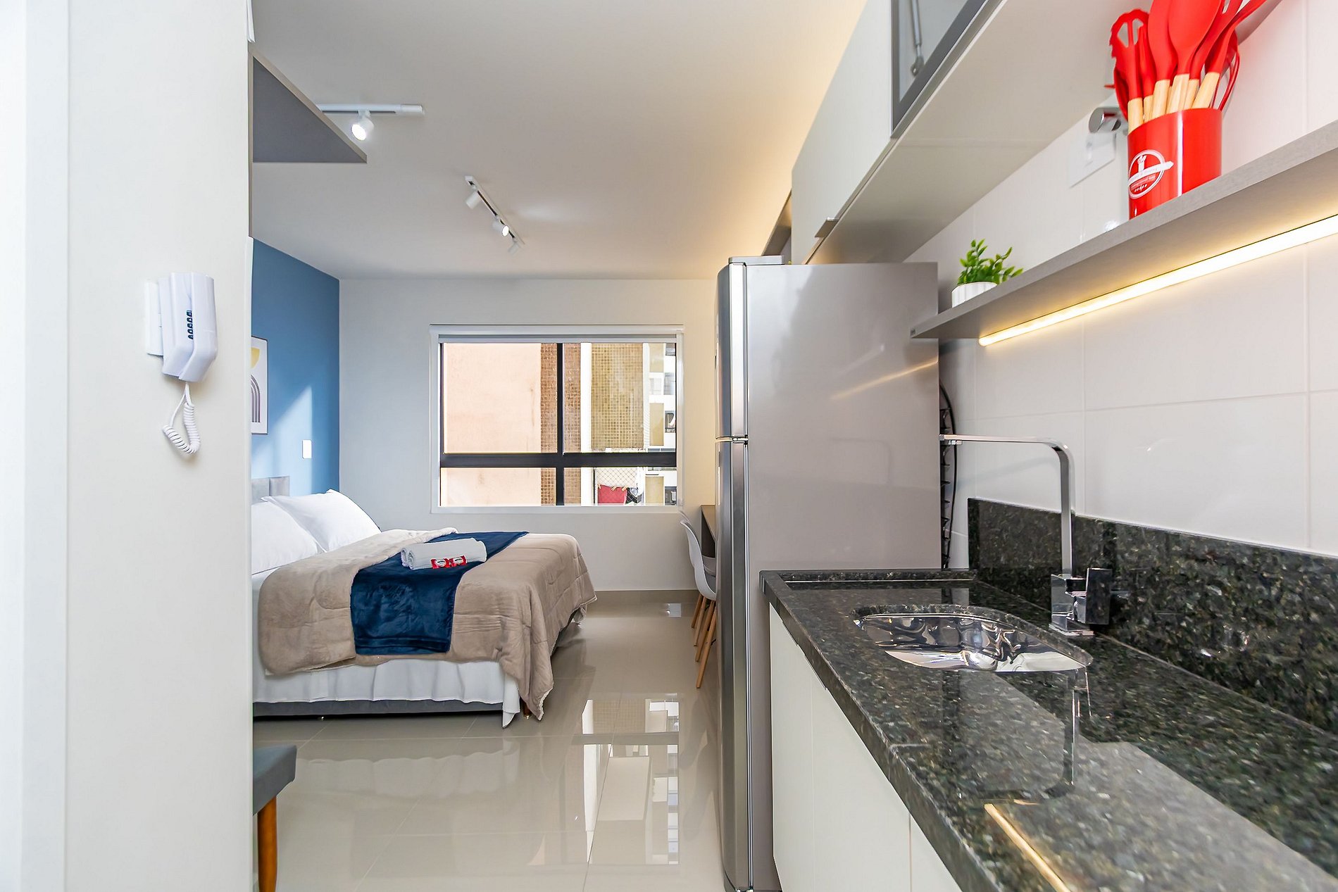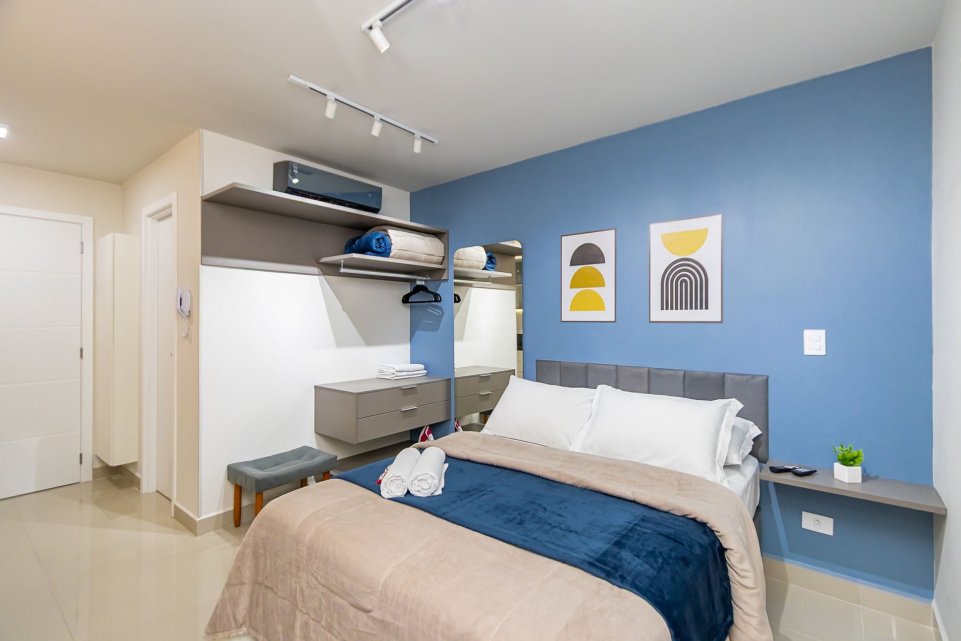 Studio novo, ideal para até 3 pessoas, com ar-condicionado, cozinha completa, Wi-Fi rápido e Smart TV. Espaço moderno, funcional e muito confortável, perfeito para estadias curtas ou longas. Localizado em um prédio novo e seguro, com portaria, elevador e ótima estrutura. A região é estratégica, com fácil acesso a transporte, centros comerciais, atrações turísticas e vias principais da cidade. Tudo pensado para sua melhor experiência em Curitiba!