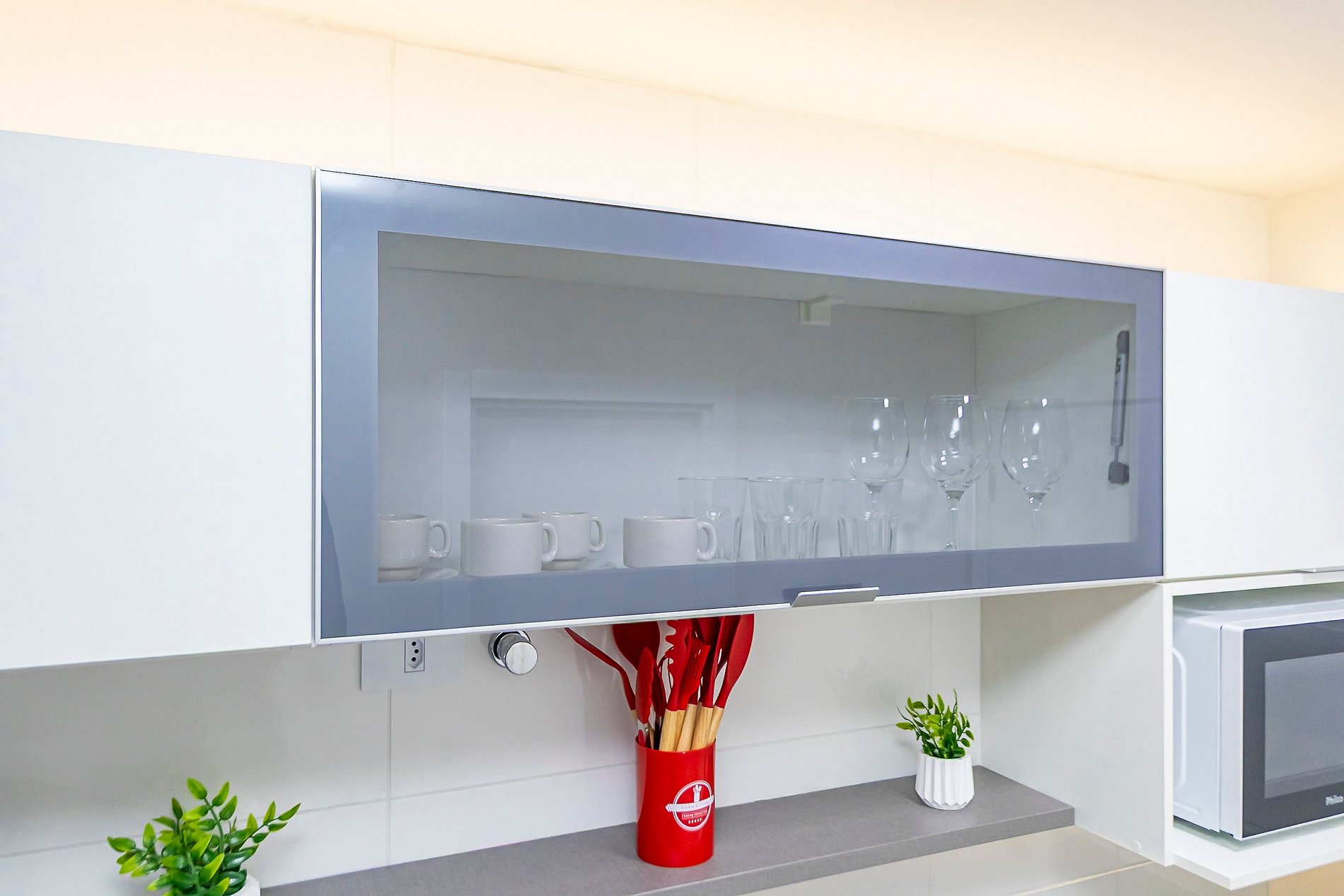 • O apartamento possui fechadura eletrônica, para aparecer o teclado numérico encoste a mão na fechadura, digite a senha e aperte o botão do cadeado aberto;