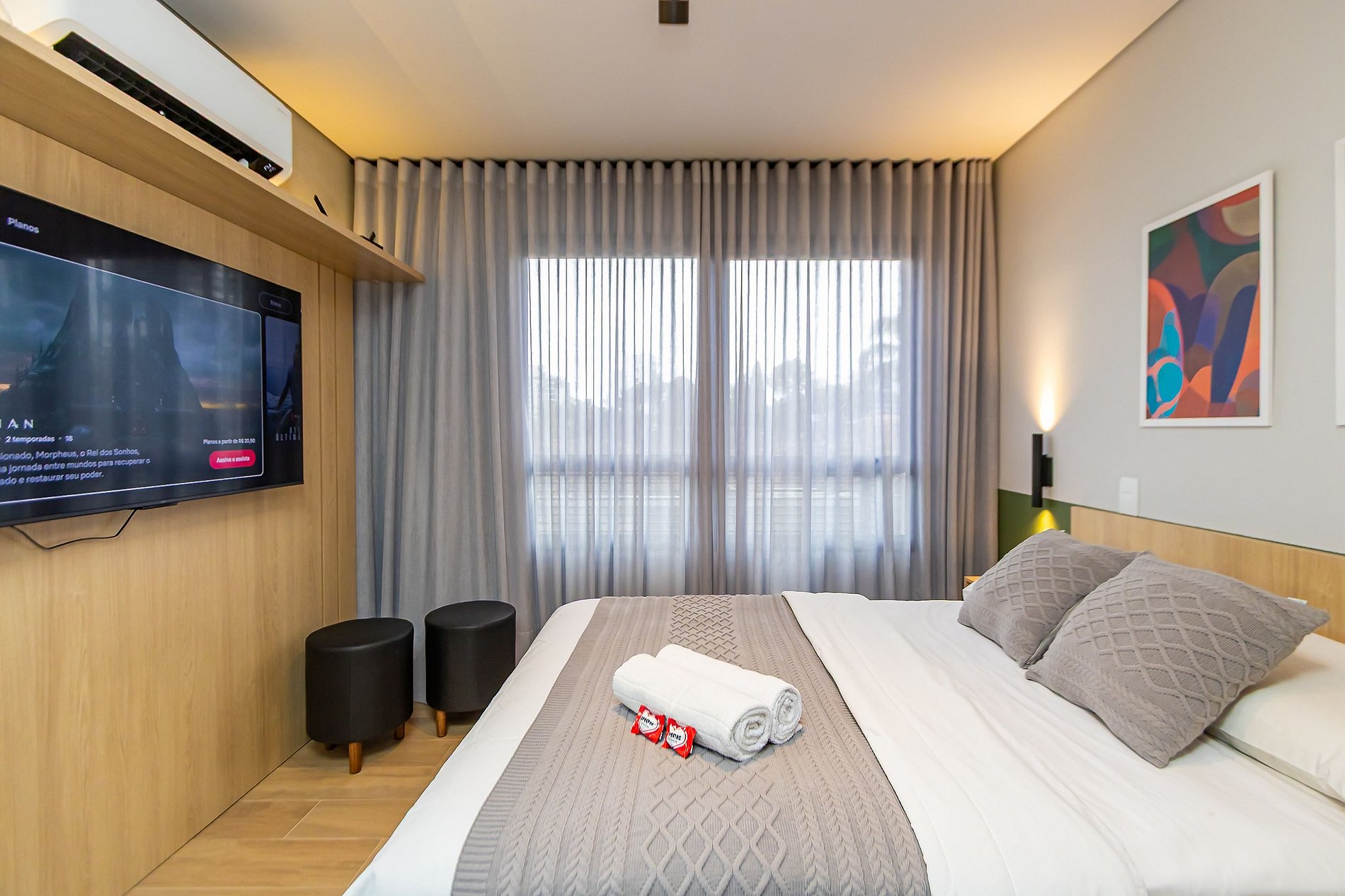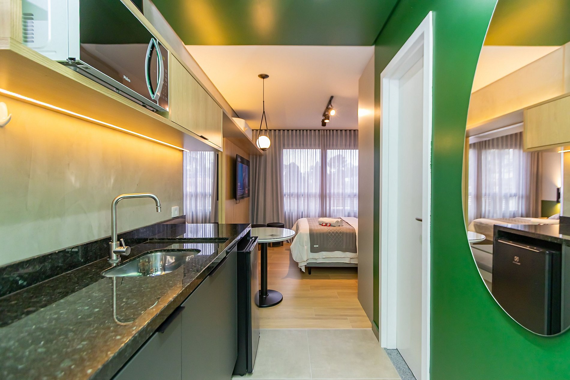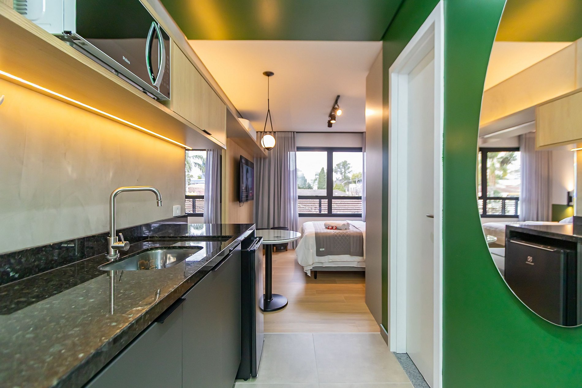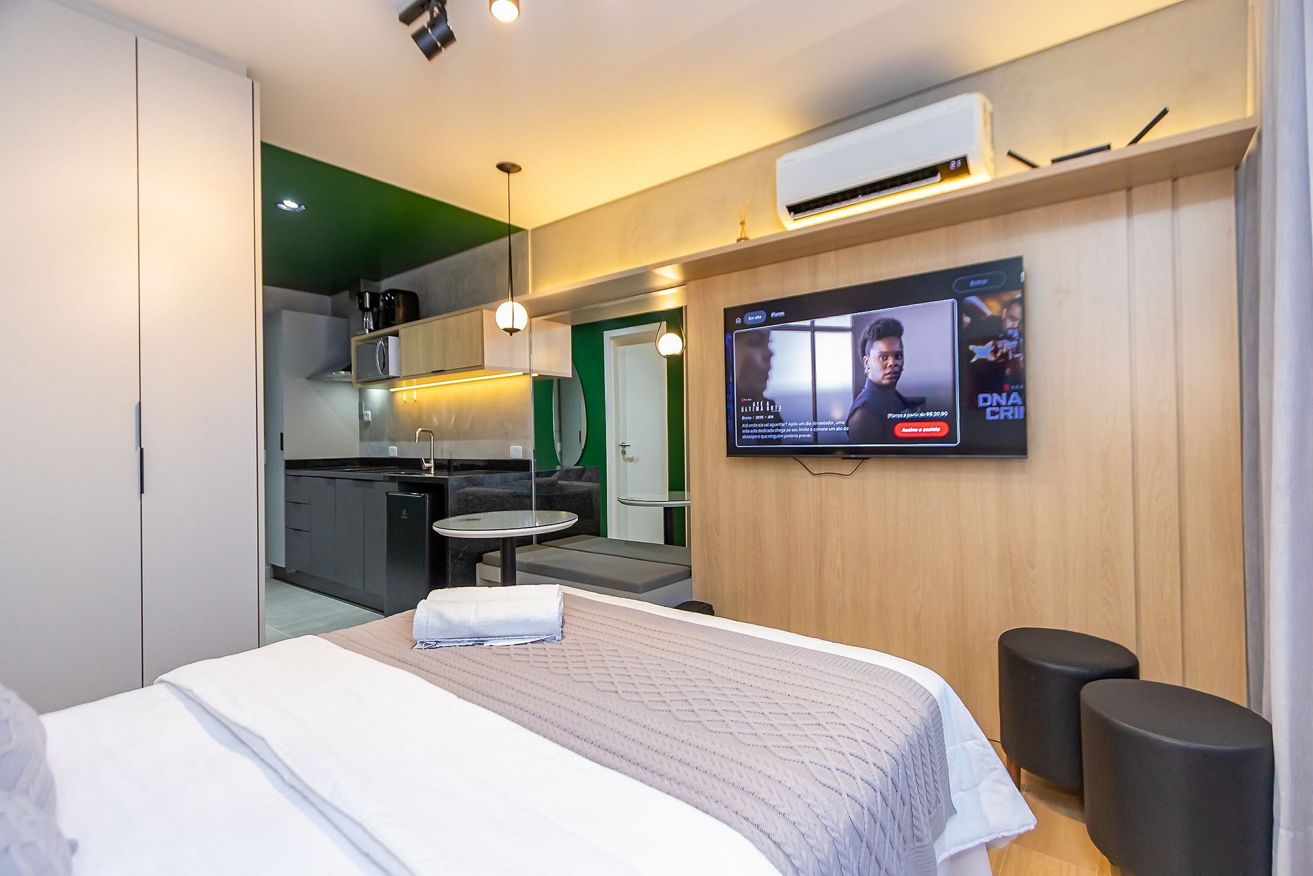 Studio super completo, ideal para até 2 pessoas, localizado em um bairro tranquilo e seguro, perfeito para descansar e aproveitar com conforto. O espaço é super completo, com cozinha equipada, cama confortável e ambiente moderno. O prédio é novo, com ótima estrutura e excelente padrão de qualidade. Ideal para quem busca praticidade, tranquilidade e uma estadia agradável em um ambiente acolhedor, com fácil acesso a diversas regiões da cidade.