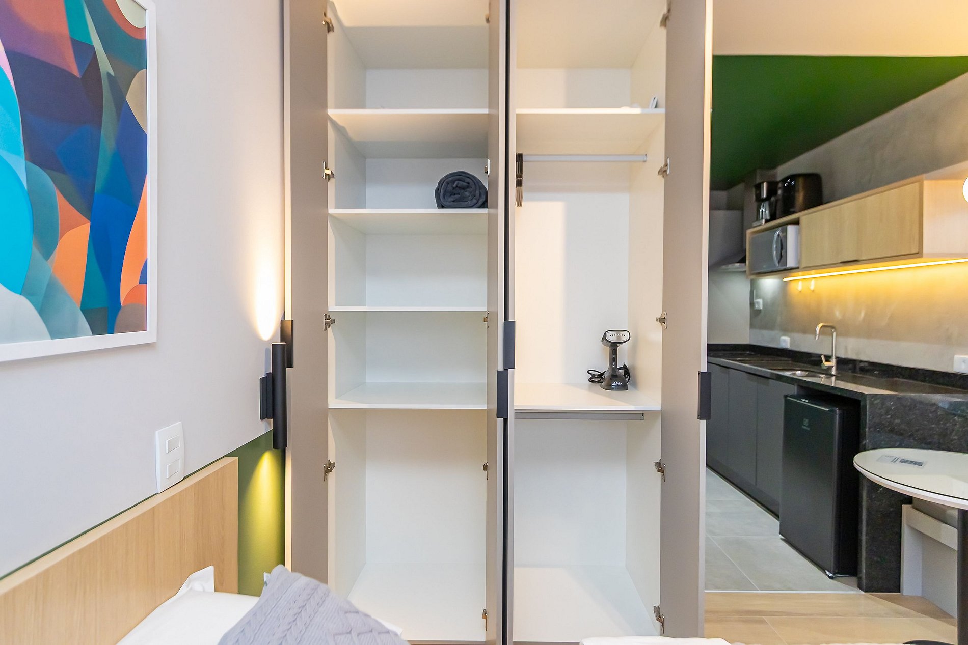 ⌂ Estúdio totalmente mobiliado que oferece as seguintes comodidades aos seus hóspedes: